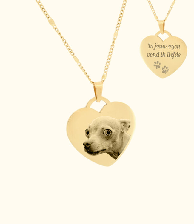 Houd je dierbare herinneringen altijd bij je met deze hart ketting met gegraveerde foto. De hartvormige hanger biedt ruimte voor een gravering van jouw keuze, zoals een geliefde foto die speciaal voor jou is. Deze ketting is ideaal als persoonlijk cadeau voor jezelf of iemand die je dierbaar is, waarmee je altijd een waardevolle herinnering dicht bij je draagt.