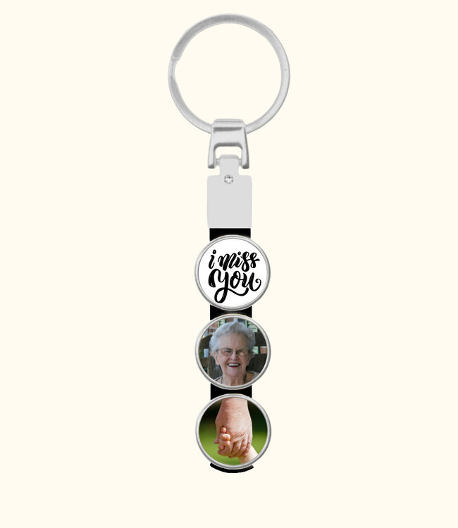 Bij het ontwerpen van jouw sleutelhanger heb je de vrijheid om drie foto’s te selecteren die je dierbaar zijn. Of het nu een foto van je gezin, huisdier of een speciale herinnering is, het kan allemaal. Voeg er een korte en mooie tekst aan toe, zoals een inspirerende quote, en creëer een sleutelhanger die echt uniek is.
