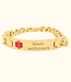 De armband is gemaakt van hoogwaardig roestvrij staal met een stijlvolle gouden afwerking. Het gegraveerde plaatje van 47 bij 10 mm biedt voldoende ruimte voor heldere en leesbare tekst. De polsomtrek is geschikt voor maten tussen de 17 en 19 cm, wat een comfortabele pasvorm garandeert voor dagelijks gebruik.